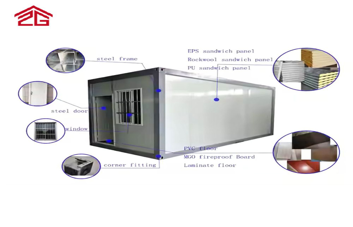 Tak och vägg: 0,5 mm järnplåt 50 mm EPS isoleringsskikt